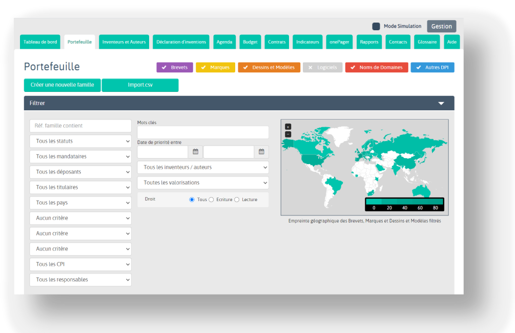 Le logiciel pour piloter votre portefeuille de Propriété Intellectuelle : gérez vos brevets, marques, dessins & modèles, logiciels et savoir-faire dans une plateforme intuitive, sécurisée et collaborative